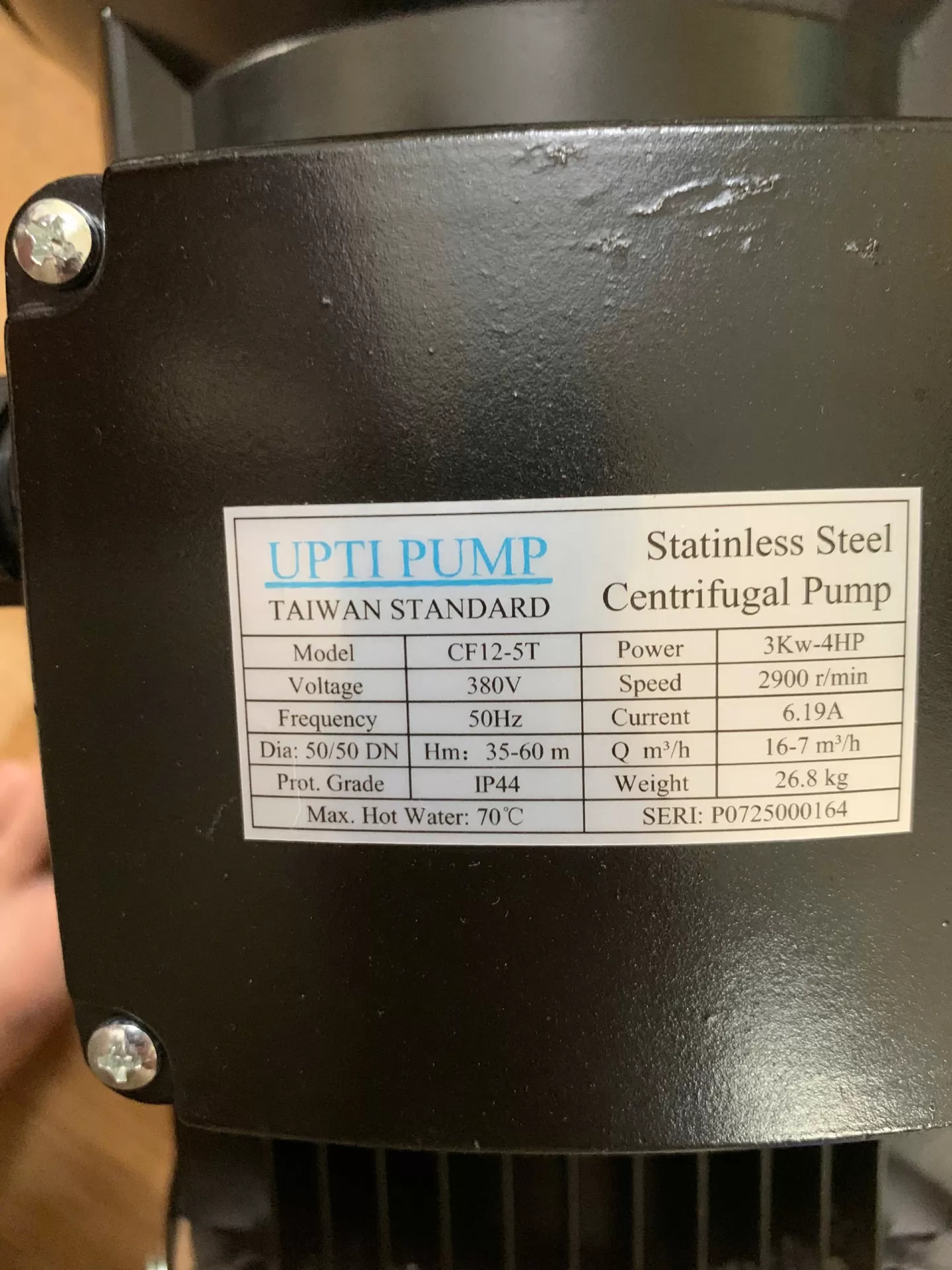 Máy bơm tăng áp UPTI Pump CF12-5T là dòng máy bơm ly tâm inox cao cấp, được thiết kế chuyên dụng để cung cấp áp lực nước mạnh mẽ và ổn định. Với công suất 3kW – 4HP, cột áp 35 – 60m và lưu lượng 7 – 16 m³/h, sản phẩm đáp ứng tốt cho cả nhu cầu dân dụng và công nghiệp.